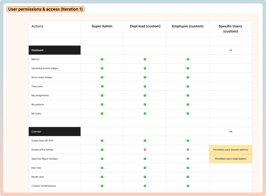 User roles & permission matrix